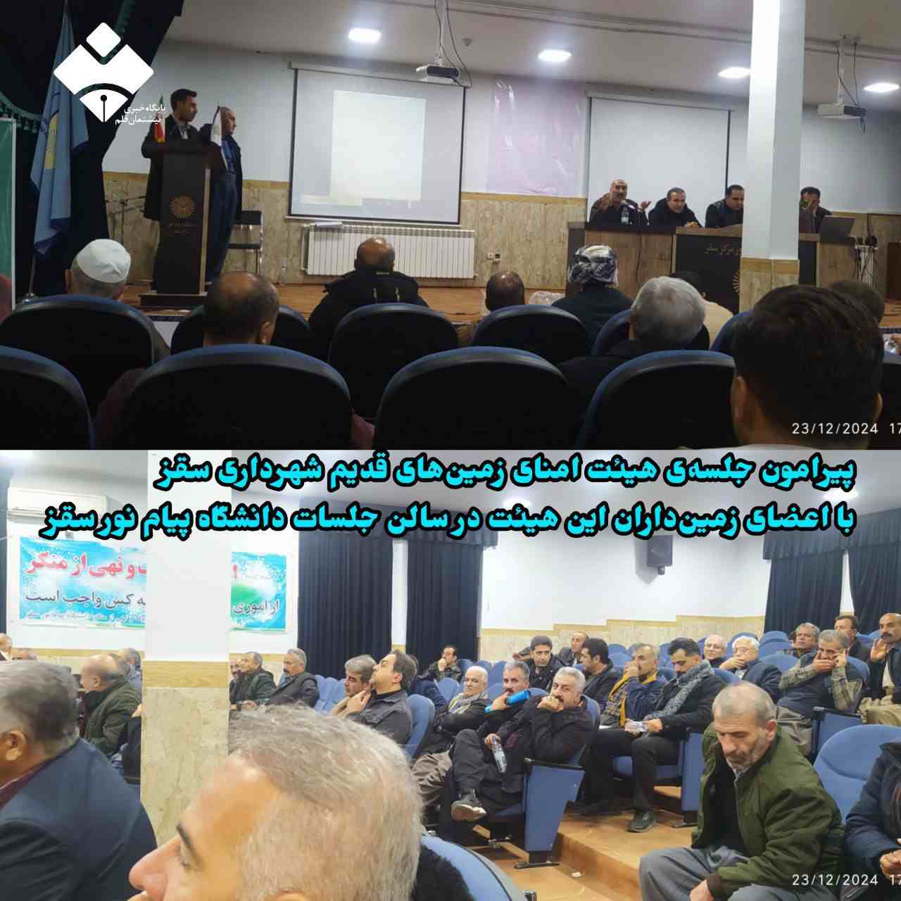 پیرامون جلسهی هیئت امنای زمینهای قدیم شهرداری سقز با اعضای زمینداران این هیئت در سالن جلسات دانشگاه پیام نور سقز